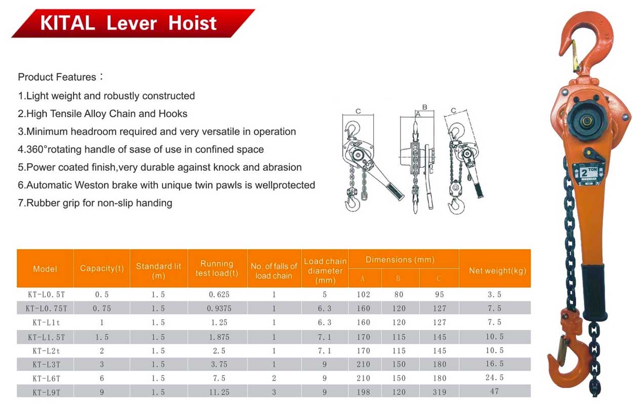 Thông số kỹ thuật pa lăng xích lắc tay Kital